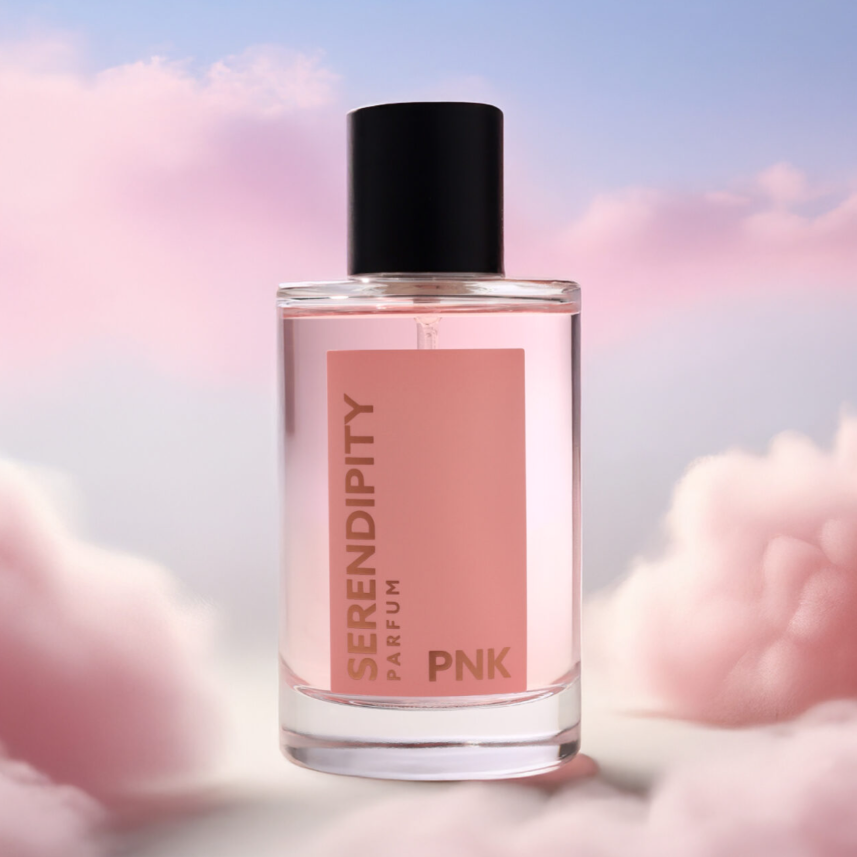 Serendipity "PNK" 100ml EDP, a dream encounter of peony and cocoa. A fragrance that pushes boundaries, awakens the senses, and taps into a deeper level of fantasy. Rich with contrasts and complexity, the elegance of peony paired with the raw depth of cocoa powder and patchouli heart adds that earthy, mysterious vibe.